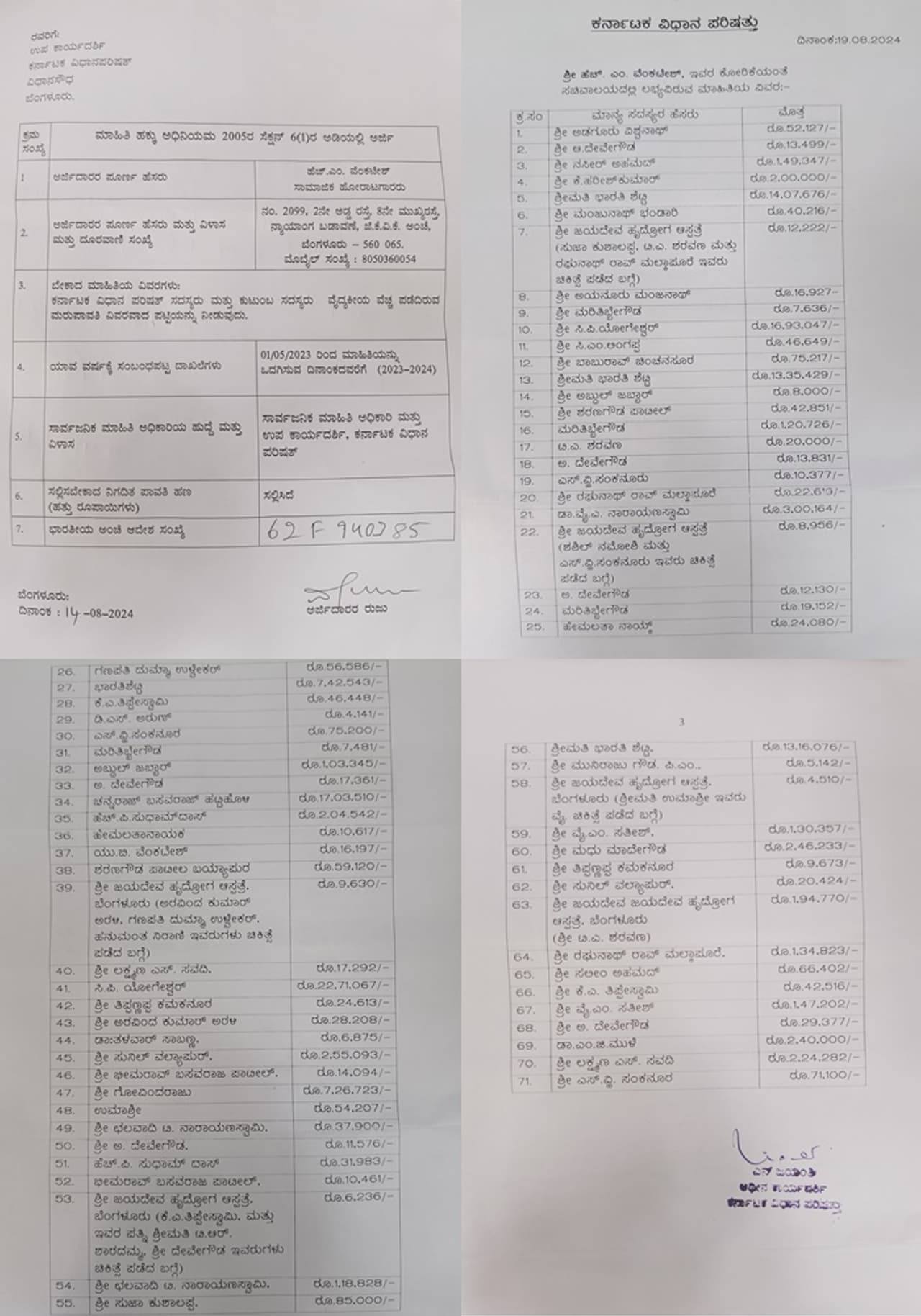 In a growing wave of allegations against the government, including the Muda scam, Valmiki scam, and misappropriation of SC-ST department funds, a new controversy has surfaced. An RTI query has revealed that several members of the Legislative Council and MLAs have claimed large sums of money for medical expenses over the past year.