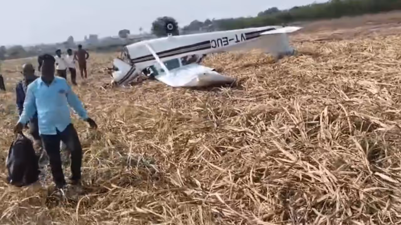 A private training aircraft crashed in Vijayapura, Karnataka, after a mid-flight engine glitch forced an emergency landing. The captain and trainee pilot were seriously injured and rushed to hospital.
