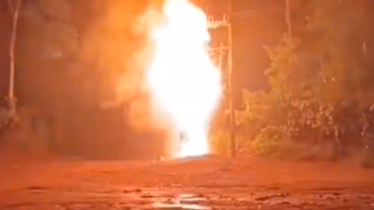 During a heavy thundershower on Monday night, a lightning strike hit a power transformer near Ambala in Mugatageri village of Ponnampet taluk. The impact caused the transformer to catch fire immediately. Fortunately, there were no residential buildings in the vicinity, preventing a potentially major disaster. Officials from BESCOM promptly reached the spot, assessed the situation, and initiated measures to ensure safety and prevent further hazards.