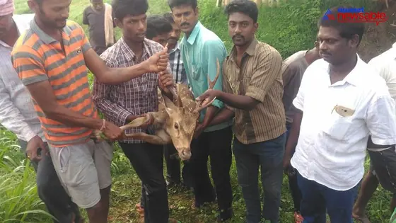 The residents of Banahalli, Nandagudi village in Hoskote were surprised to see a deer running around in the sleepy village's roads. It apparently was looking for food. The villagers caught the deer and handed it over to forest department officials who later released it into its natural habitat.