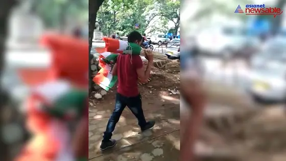 Congress party workers were seen removing party flags and collecting them in Bangalore.