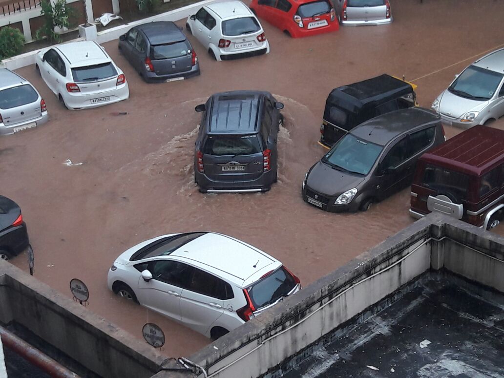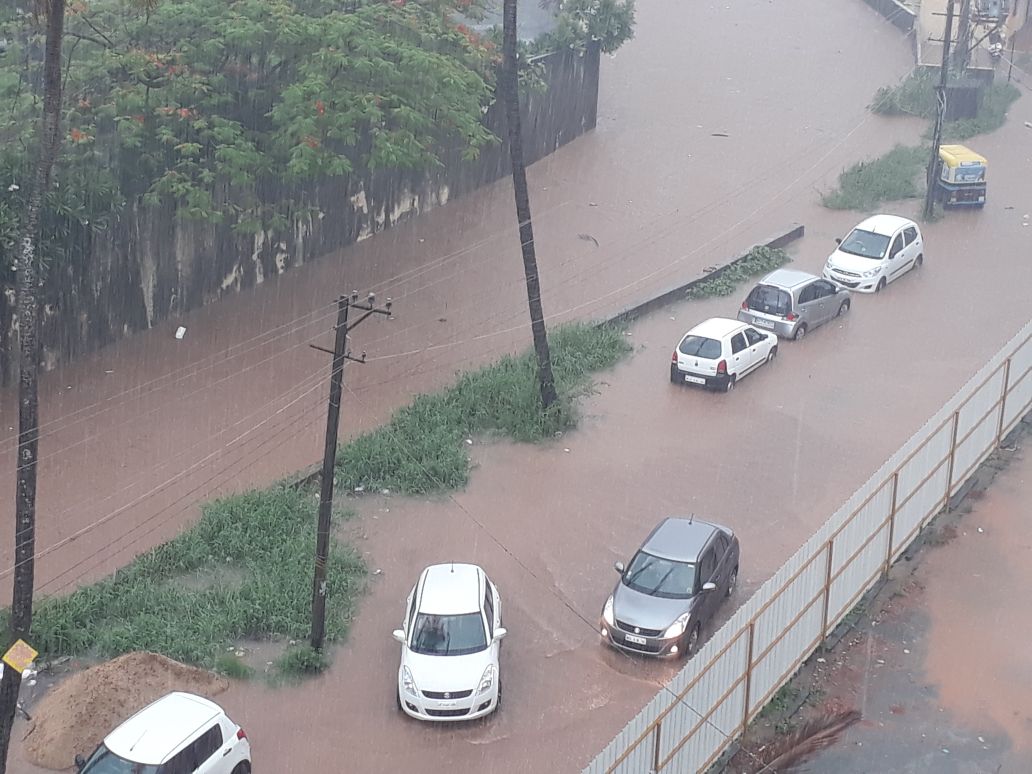 The vehicles parked have drowned in the water accumulated on the roadside. The houses situated in the lower area have been inundated. With warnings of heavy rains for next two dates too, the situation is expected to become worse. Depression in the Arabian Sea is the reason behind heavy rains.