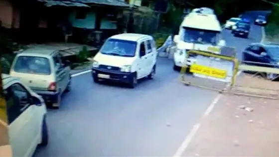 This CCTV footage is not less than a movie scene, where a tempo traveller hit several barricades on a checkpost and went straight without caring for other vehicles on the road. This incident happened at Someshwara near Prebargadi Hebri in Udupi district, where police and army personnel were checking several cars by putting up a check-post. Later, a Traveller bus can be seen on the CCTV coming from a mile in highspeed and hitting the barricades. Watch this frightening video on Asianet Newsable to know more.