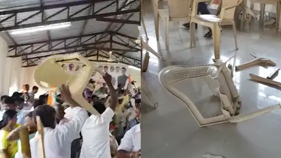 Supporters of Gayathri Shanthegowda in Chikkamagalur, Karnataka, went on a rampage and broke all the chairs as their leader's name did not appear in the first list of candidates released by the Congress ahead of Karnataka Assembly Election. Hundreds of chairs kept at the Congress Office in Chikkamagalur, were damaged, thanks to the anger of Gayathri's supporters. They even laid siege to the district president of the party.