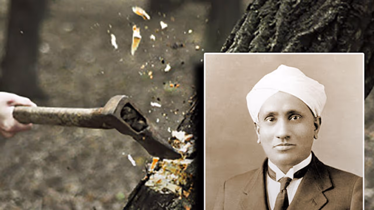 Two Sandalwood trees measuring 18 and 16 feet that once adorned the premises of Nobel laureate scientist CV Raman's house in Malleswaram were chopped in flat 20 minutes by miscreants in the wee hours of Saturday. The miscreants threatened the two guards with machete and stolen the trees.