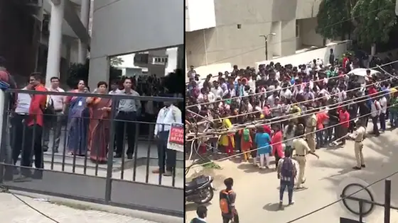 Students of CMR college protests outside campus in Bengaluru
