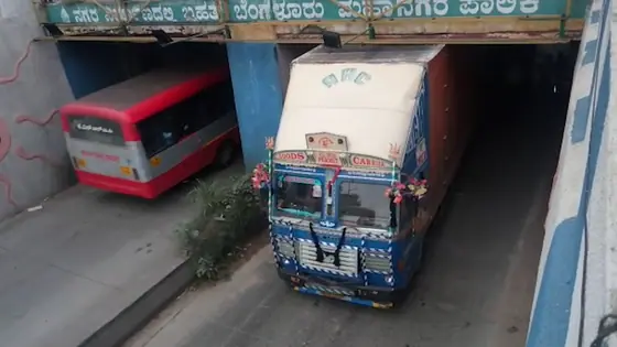 As a large container tried to go through an underpass, it got trapped near Maharani college, in Bengaluru, Karnataka. It took about three hours for the truck to come out safely, with the help of High Grounds Traffic police a crane was brought to the place and towed the container safely. Watch this video on Asianet Newsable to watch how this unfortunate incident took place.
