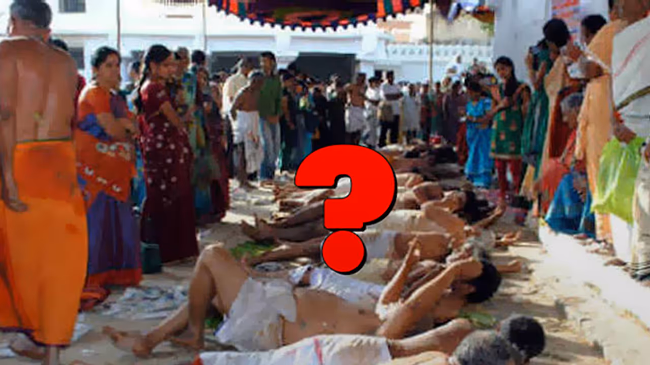 The ritual involves people from lower caste rolling over the leftover food served to brahmins They believe that this cures them of skin disease, infertility and also shed their past karma The ritual has been banned by the Supreme Court and the High court has suggested for a modified version of the ritual, 'Ede Snana'