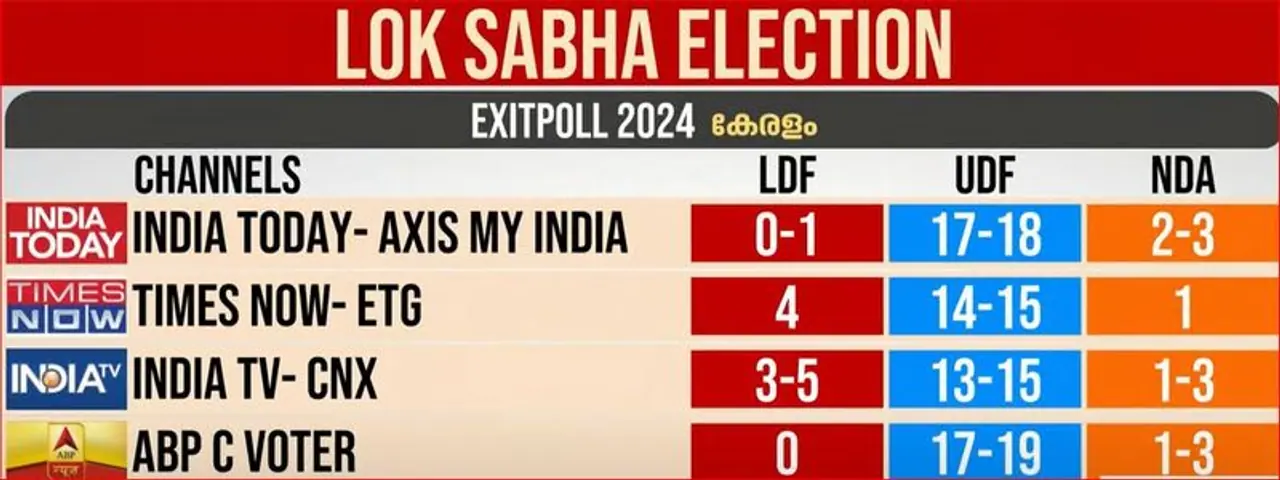 Times Now-ETG predicts 4 seats for LDF, 14-15 seats for the UDF, and one seat for the NDA.