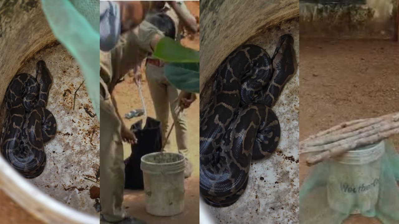 The first day, a python was spotted on the verandah. The next day, another one turned up in the sit-out. And today, a third one was found in the house's front yard. Each time, the neighbours came together, caught the snake, and handed it over to the forest officials.