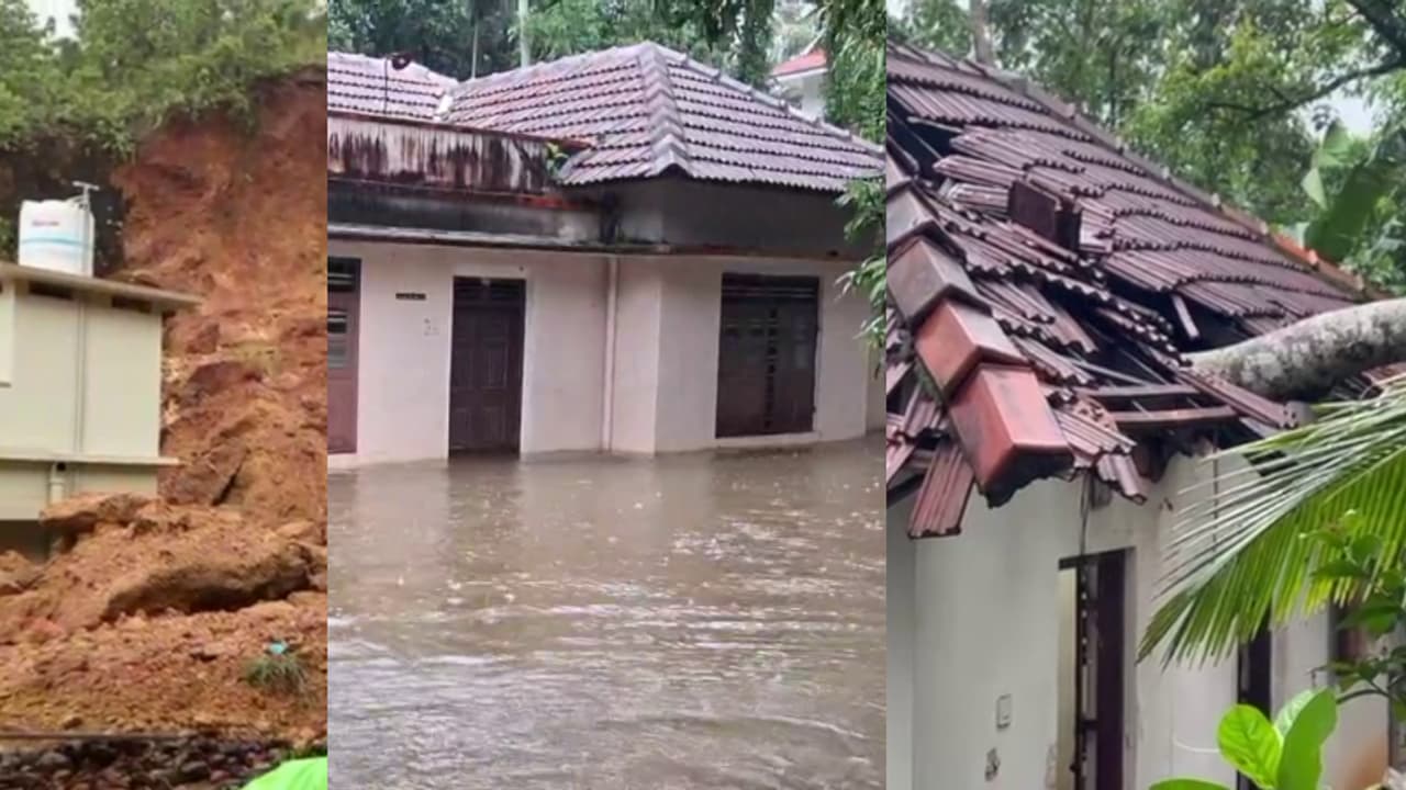Families were evacuated in dinghy boats from Puzhathi and Thavakkara in Kannur due to flooding. Low-lying areas in Alappuzha, Kottayam, Pathanamthitta, and Ernakulam districts were also flooded, causing hardship. Houses were damaged in many places due to strong winds and rain. Heavy traffic jam on Thiruvalla Ambalappuzha state highway due to heavy waterlogging. The waterlogging formed over a one-kilometer stretch from Nedumpram Anthi Chanda to Hospital Padi has caused the traffic disruption. Soil collapsed on top of houses in Ramanthali, Palakkod, Kannur. The houses of Sulaiman and Ibrahim, natives of Palakkod, were affected. The kitchen of one house was completely covered in soil. Several places in Kasaragod district, which is on red alert, were flooded due to heavy rain. 18 families were evacuated in Mooliar. Flood warnings were issued for the banks of Mogral River, Tejaswini River, and Uppala River. Flooding was severe in Manjeshwaram taluk.