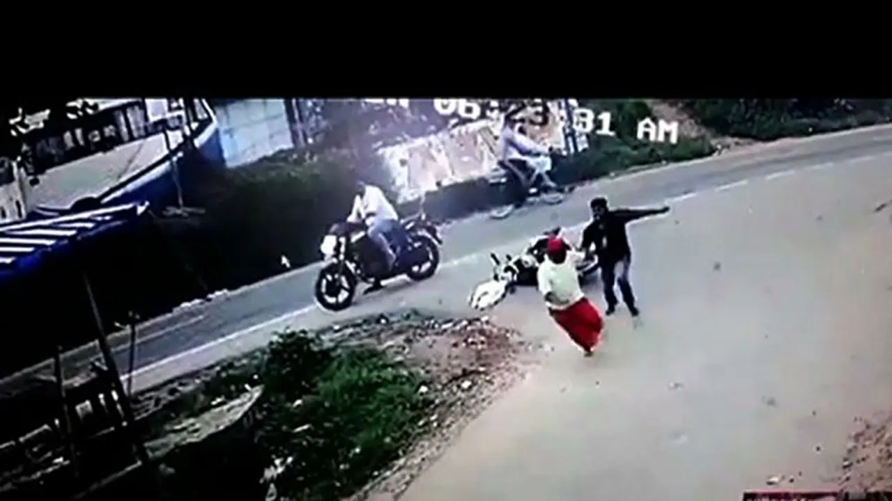 A CCTV video of the incident, which went viral, shows the assailants pushing the victim, Kumar, riding a bike and attacking him with a weapon as he falls down. He managed to escape and is undergoing treatment at the Neyyattinkara government hospital.
