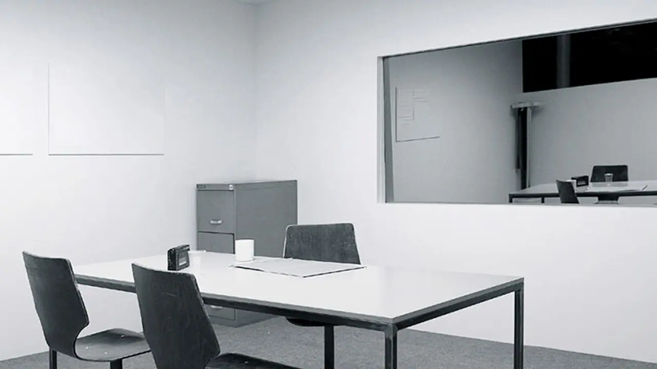 Officers in the second room can watch the developments and give instructions to the interrogator through wireless headsets, with the suspect totally unaware of their presence.