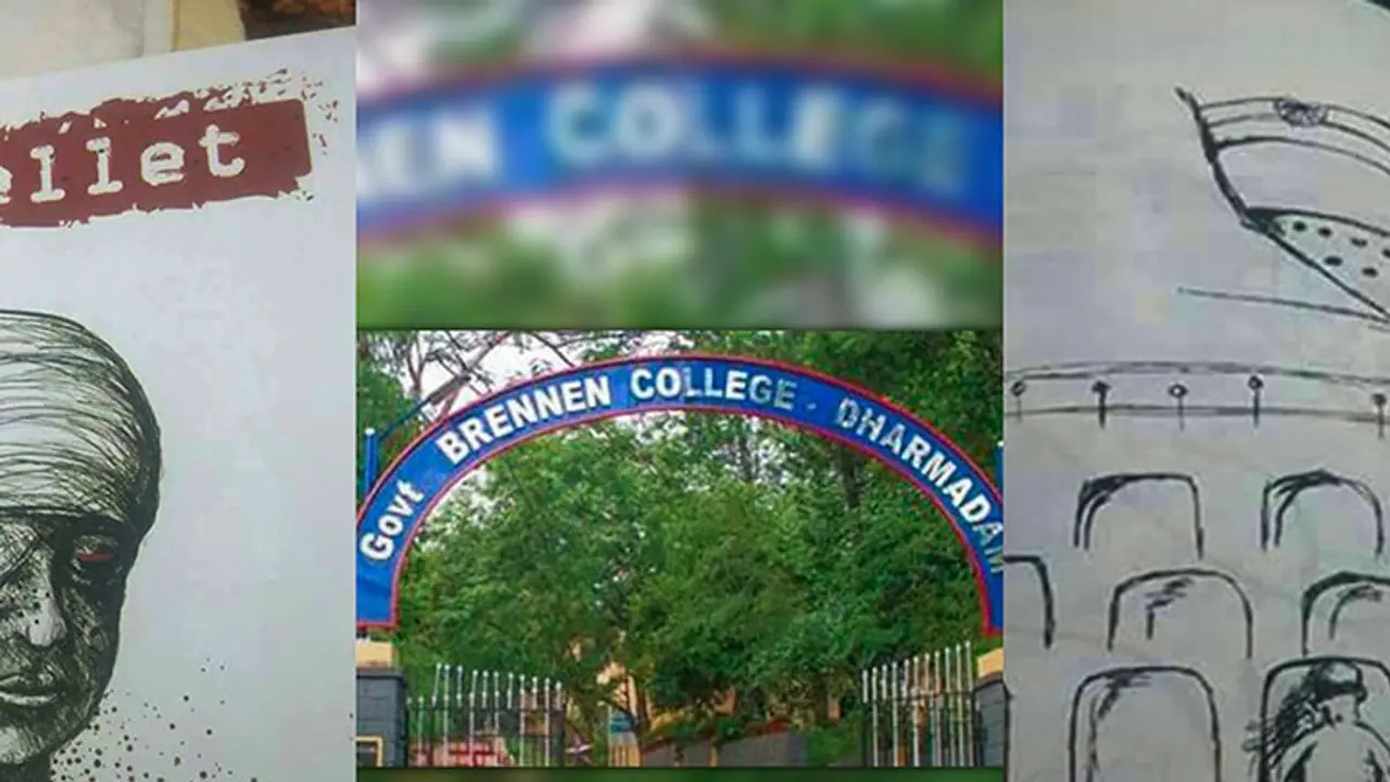 Brennen College in Thalassery has found itself in the eye of the storm after a drawing published in the annual college magazine has been accused of ridiculing the recent Supreme Court order to play the national anthem before the screening of films at theatres and multiplexes across the country.