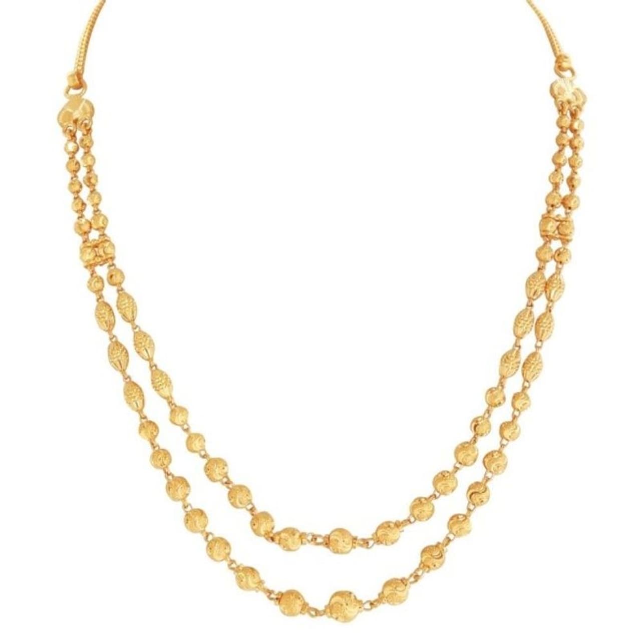 If this appears too simple for your liking, another choice can be this regal 2-chained gold necklace. In a single colour, the beauty of the necklace lies in its intricate design Giving off a royal vibe, the necklace shall go well with long western dresses and gowns.