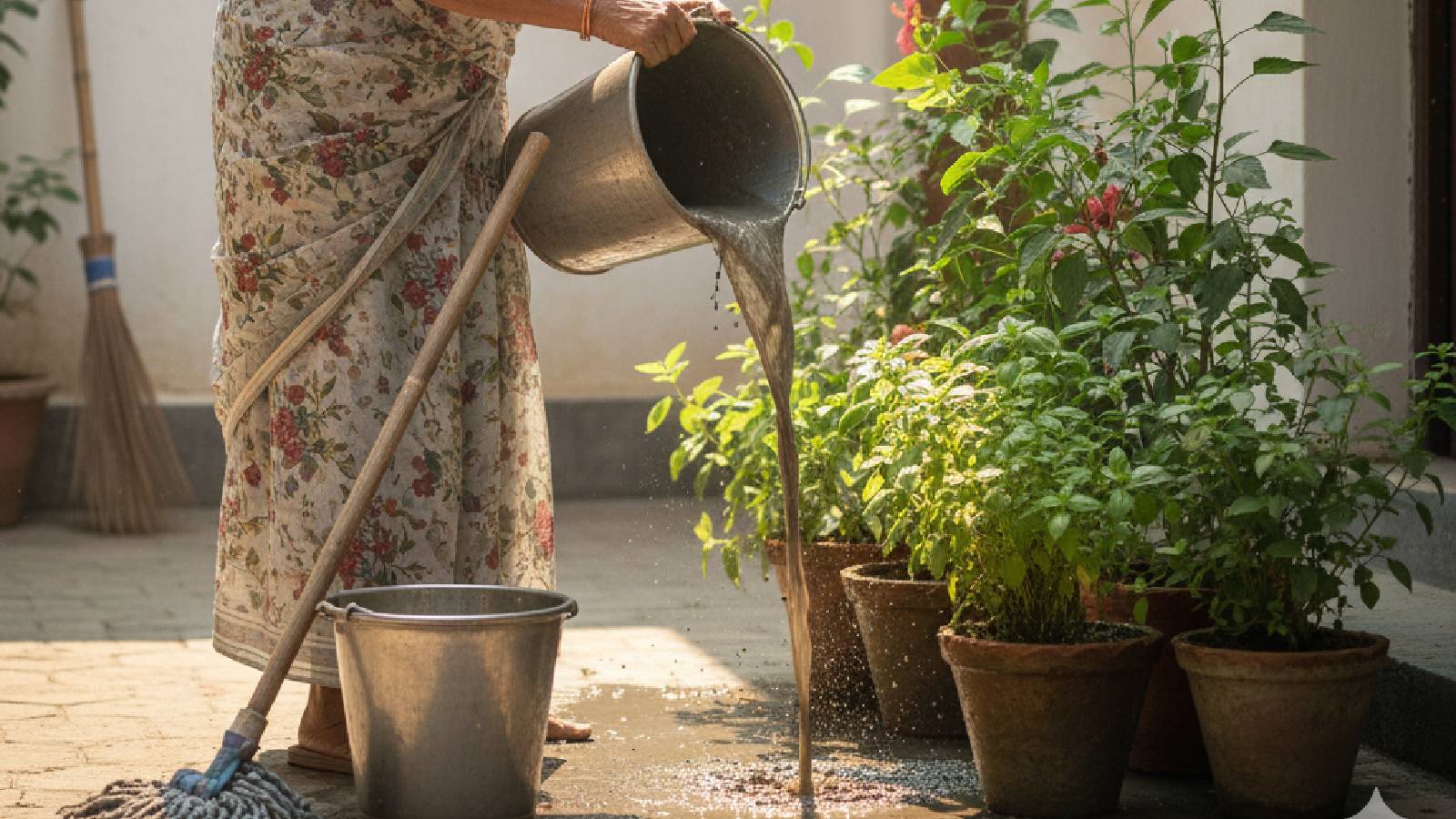 Often, after cleaning the floor, people pour the water into balcony pots or the garden. Do not do this at all. Water mixed with paint, phenyl, or chemicals contains toxins that make the soil poisonous. This causes your garden to gradually deteriorate. Always use clean, normal-temperature water for gardening.