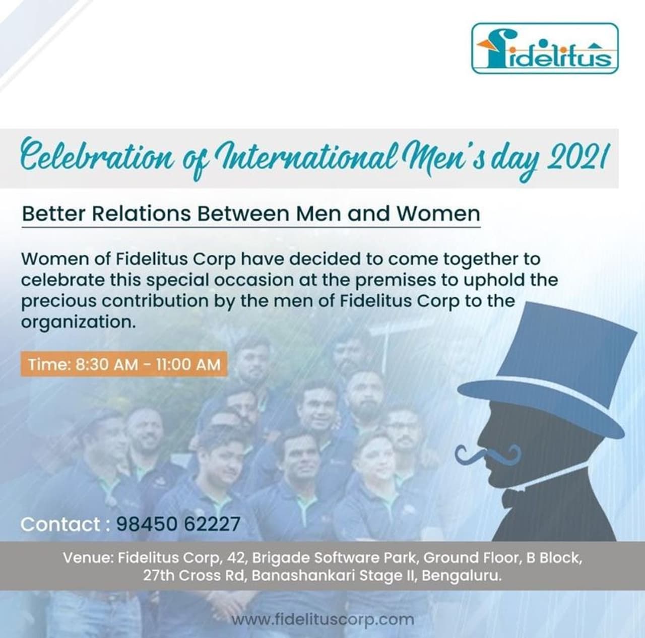 Bengaluru: International Men’s Day was celebrated with great pomp and splendor at Fidelitus Corp, Banashankari II Stage, Bengaluru on November 19. The men were given a traditional welcome with a “dhol” and they donned turbans to mark the occasion.