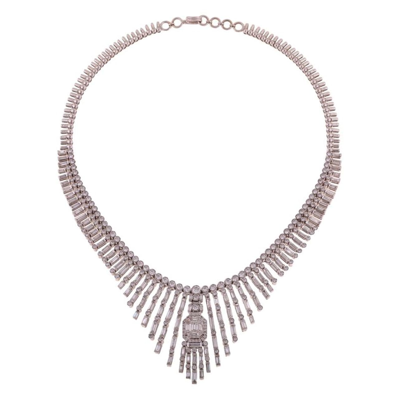 On the other hand, if you are going for a special event – perhaps an anniversary dinner – ditch crafty jewels for classic ones. Like this solitaire diamond necklace paired with a breathtaking strapless black gown and silver stilettos.