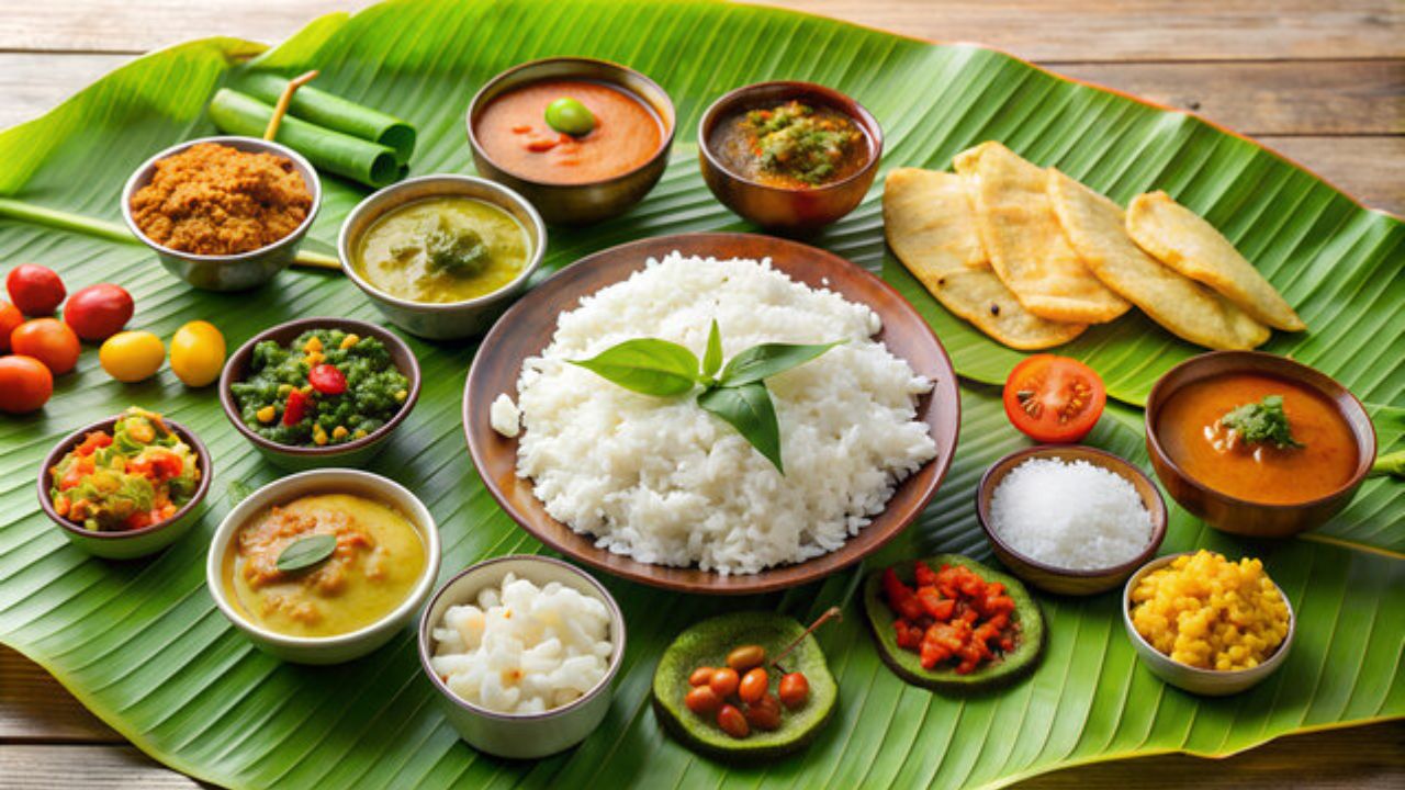 Sadhya is served on a banana leaf and eaten with the right hand. Banana leaves are eco-friendly and considered healthy. The food absorbs antibacterial properties, reflecting India's nature-centric lifestyle.