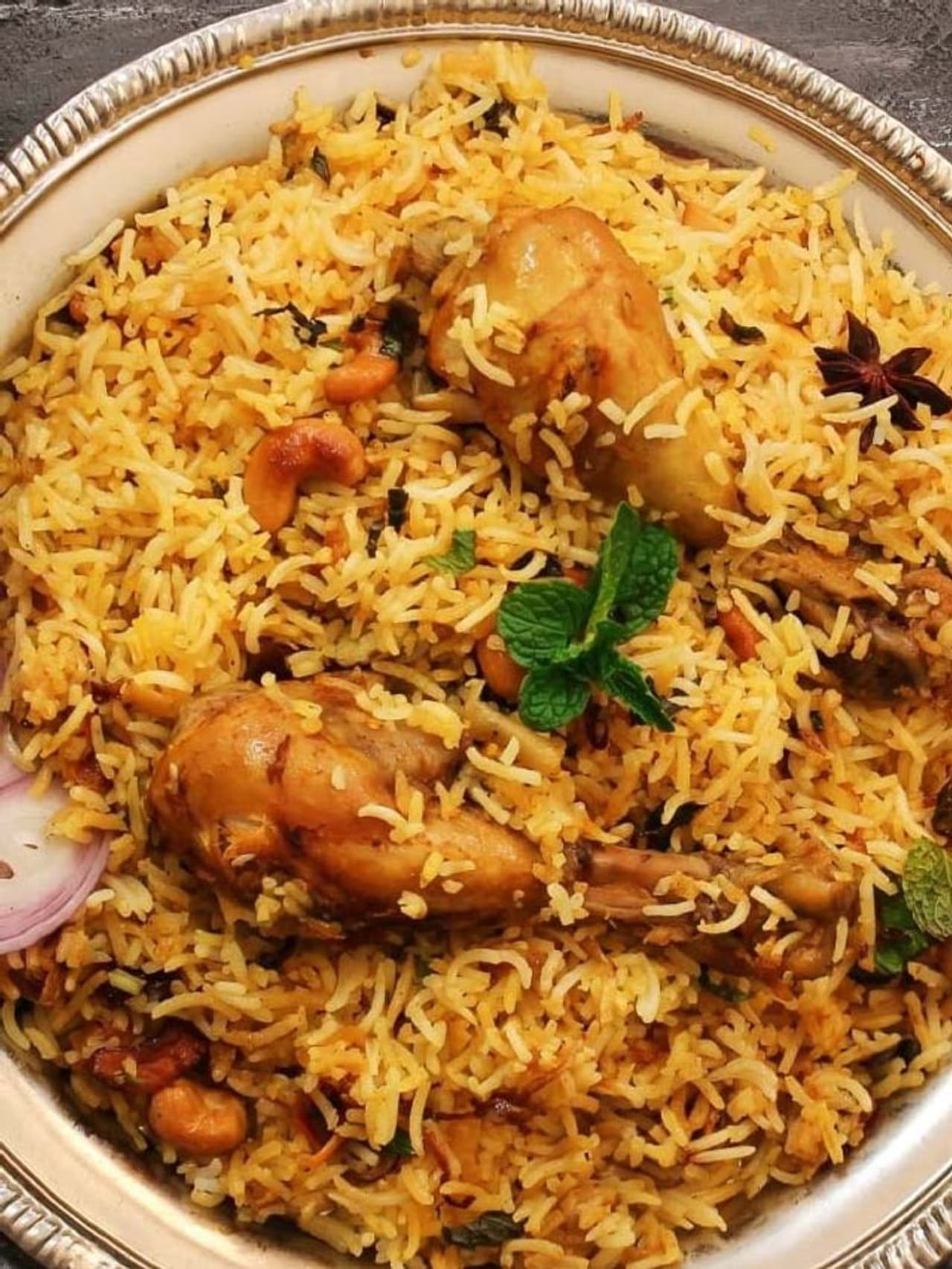 Chicken Biryani is a fragrant and savoury rice dish prepared with marinated chicken, aromatic spices, and herbs. Owing to its delicious flavour and scent, it is a festive and popular meal frequently served at Iftar events.