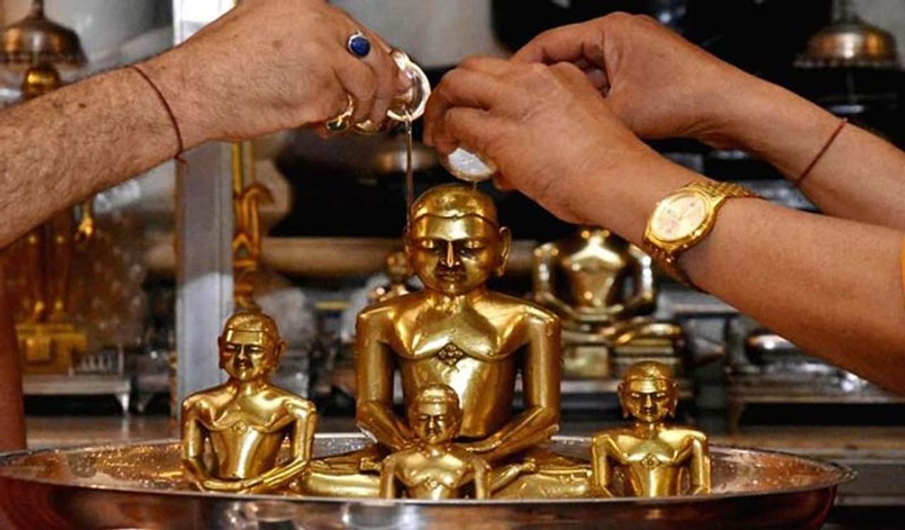 On Mahavir Jayanti, Jains rise early to worship and meditate. Certain rituals are performed in Jain temples, such as the Abhisheka (ritual washing) of Lord Mahavir's idol and the recitation of his teachings from sacred scriptures. Devotees also sacrifice flowers, fruits, and sweets to the god.