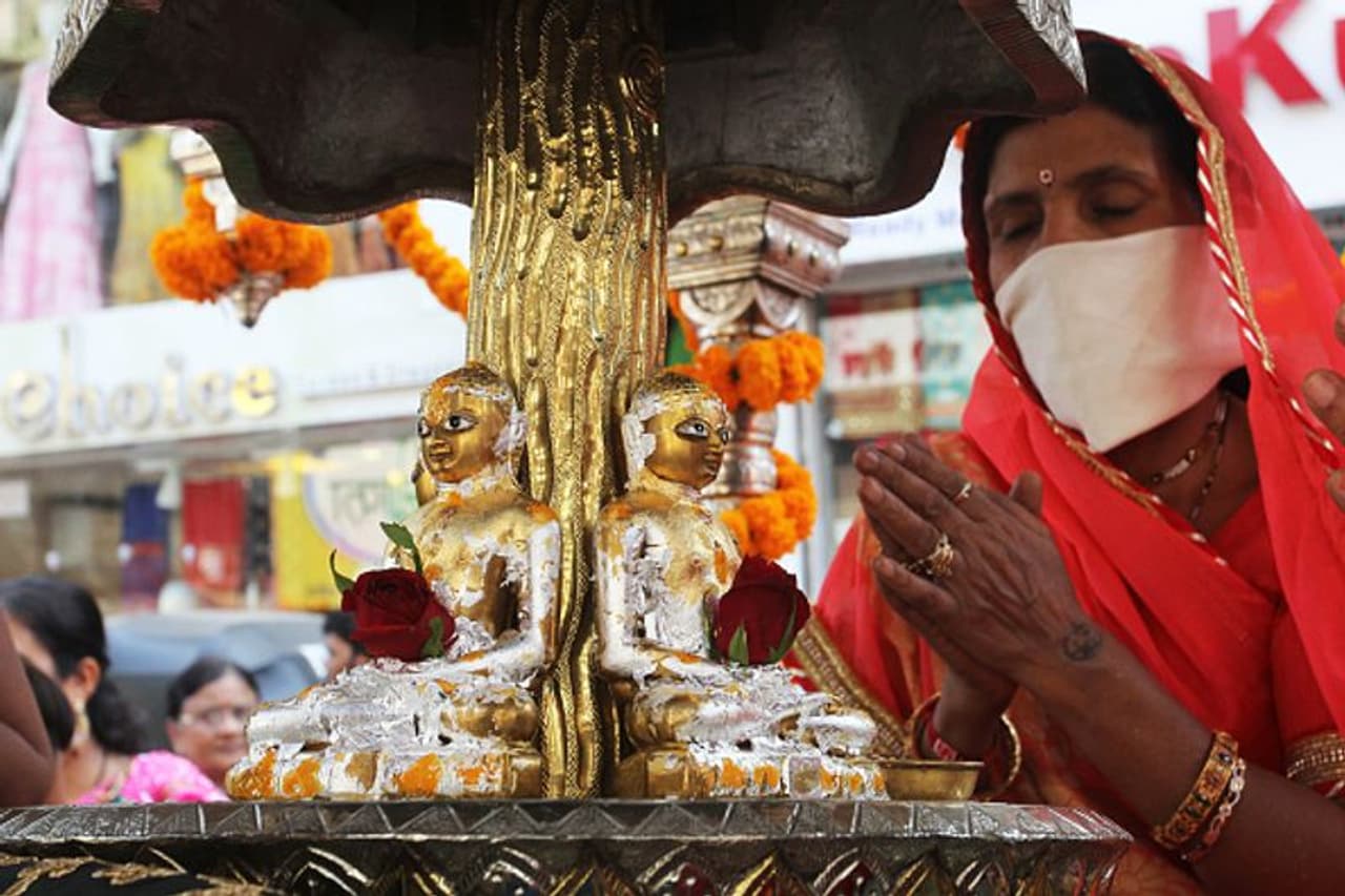 On Mahavir Jayanti, there are religious processions known as rath yatra, and Jain temples are decorated with flags. Donations are also provided to support the poor and needy and prevent animals from being butchered.
