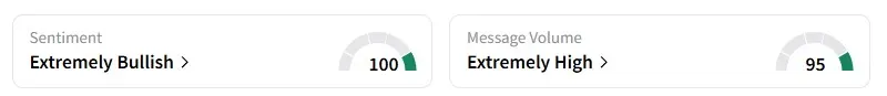 Data on Stocktwits shows retail sentiment has flipped to 'extremely bullish' from 'neutral' a week ago.