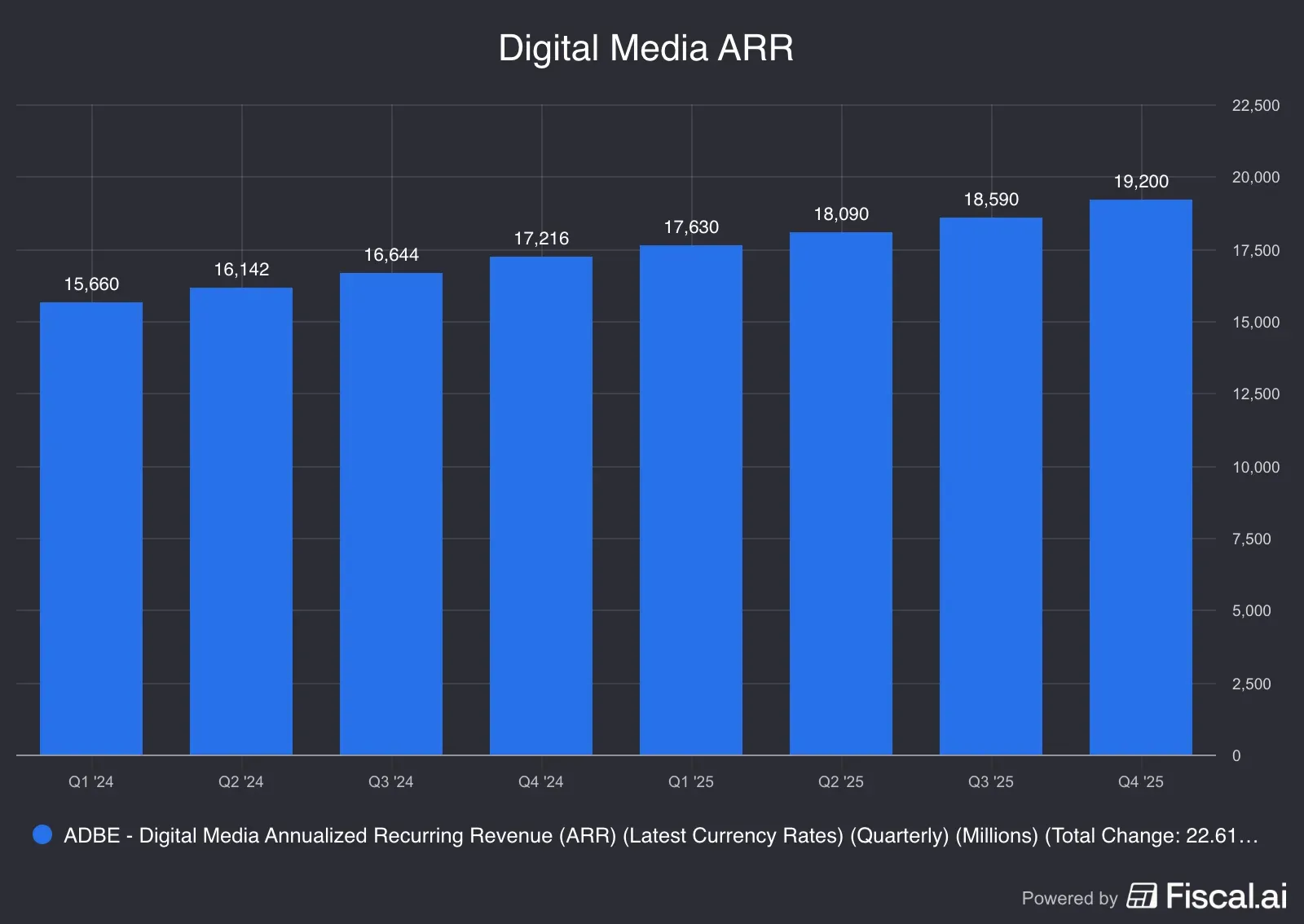 The annual results reported Wednesday after the close showed that the company exited 2025 with Digital Media ARR of $19.20 billion, marking 11.5% YoY growth. This business fetches roughly three-fourths of Adobe’s revenue.