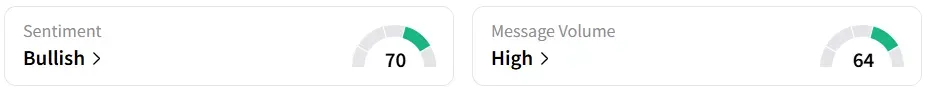 Retail sentiment and chatter on Stocktwits increased this week. Sentiment turned ‘bullish’ from ‘bearish’ last week, amid ‘high’ message volumes.