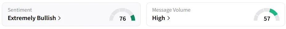 Retail sentiment on Stocktwits turned ‘extremely bullish,’ amid ‘high' message volumes. It was ‘bullish’ a day earlier. It is among the top trending stocks on the platform.