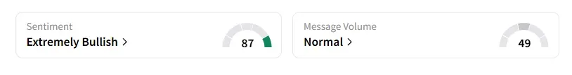 Data on Stocktwits shows that retail sentiment has flipped from ‘neutral’ to ‘extremely bullish’ on Tuesday.