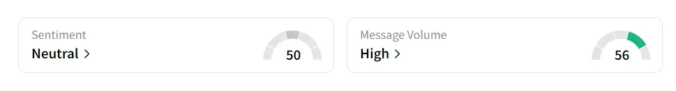 On Stocktwits, sentiment was ‘neutral’ amid ‘high’ message volume.