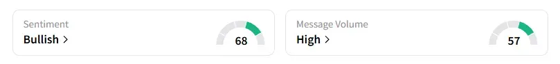 Data on Stocktwits shows retail sentiment is ‘bullish’ amid ‘high’ message volumes.