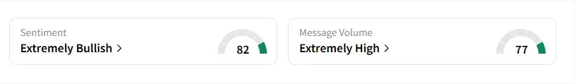 However, data on Stocktwits shows that retail sentiment is ‘extremely bullish’ amid ‘very high’ message volumes.