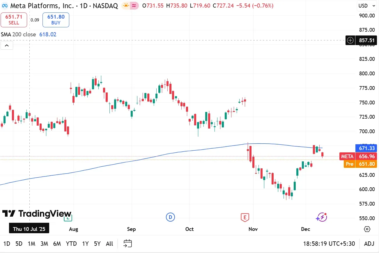 As the year draws to a close and heads toward the holiday season, every ‘Magnificent 7’ stock is trading above its 200-day moving average (DMA), with one exception: META Platforms Inc. (META), the parent company of Facebook and Instagram.