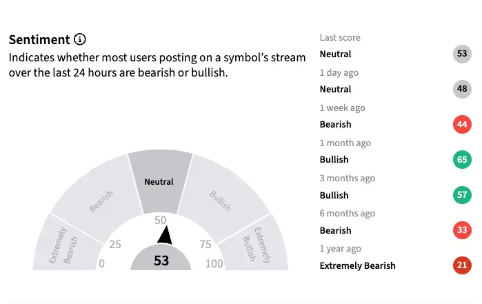 The market mood captured by the sentiment meter on Stocktwits, however, painted a sour outlook for the QQQ ETF, potentially reflecting worries about AI bubble following Oracle’s results. The mood toward the SPY ETF remained ‘neutral.’