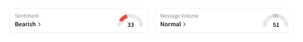 On Stocktwits, retail sentiment was ‘bearish’ amid ‘normal’ message volume.