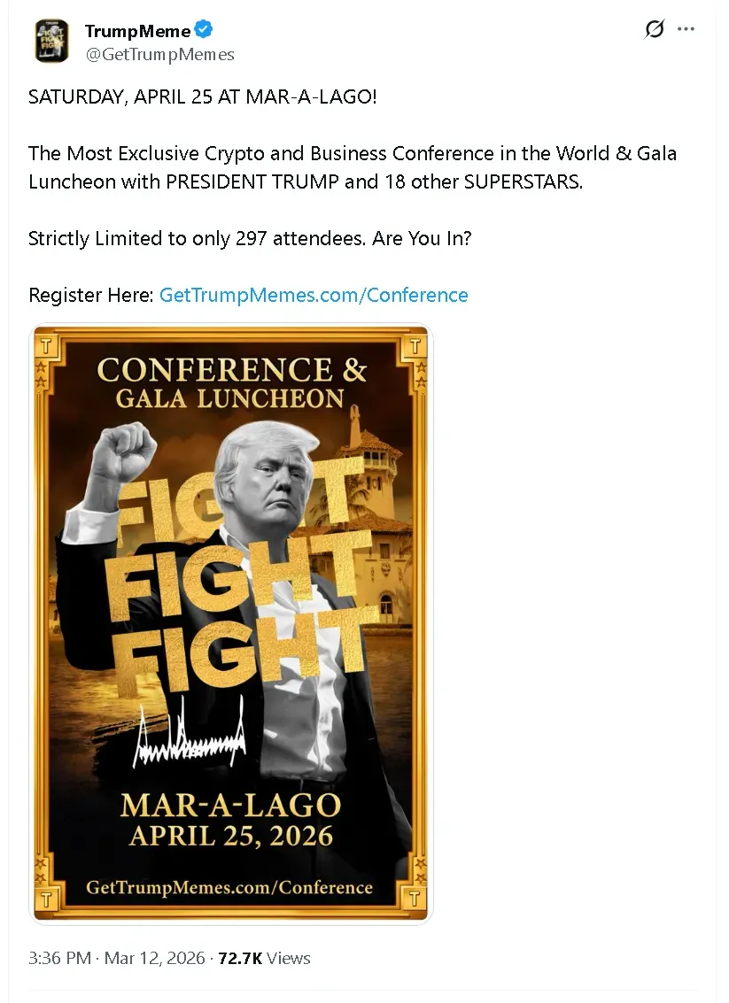 In a post on X, the team behind TRUMP coin posted that a “gala luncheon” with President Trump and 18 other “superstars” is planned for April 25, but did not specify who those people would be. The event is limited to 297 attendees.