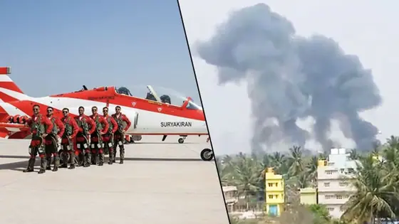 Both pilots ejected safely before two jets of the Surya Kiran aerobatics team crashed at the Yelahanka Airbase in Bengaluru
