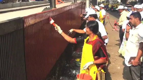 On Republic Day, Bengaluru mayor Gangambike Mallikarjuna and deputy mayor Bhadre Gowda were seen cleaning the walls and painting them as an initiative to keep the city clean.