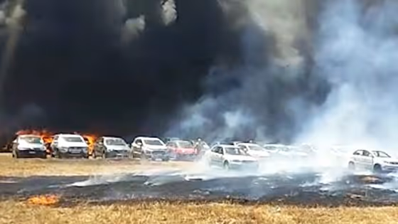 In a major fire at Aero India 2019, over 300 parked cars caught fire. The fire started near AFS Yelahanka Gurudwara near Bharati Nagar Gate.