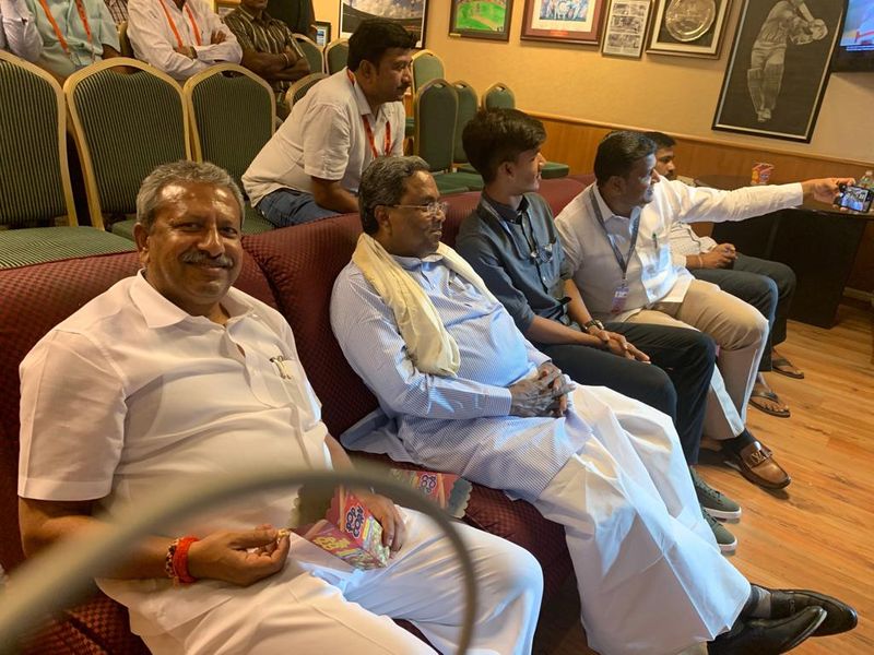 Amidst tensions of the Income Tax raid on JDS minister Puttaraju and Muddahanumegowda's rebel candidature, Siddaramaiah found some time to watch the RCB match in Bengaluru, on Thursday