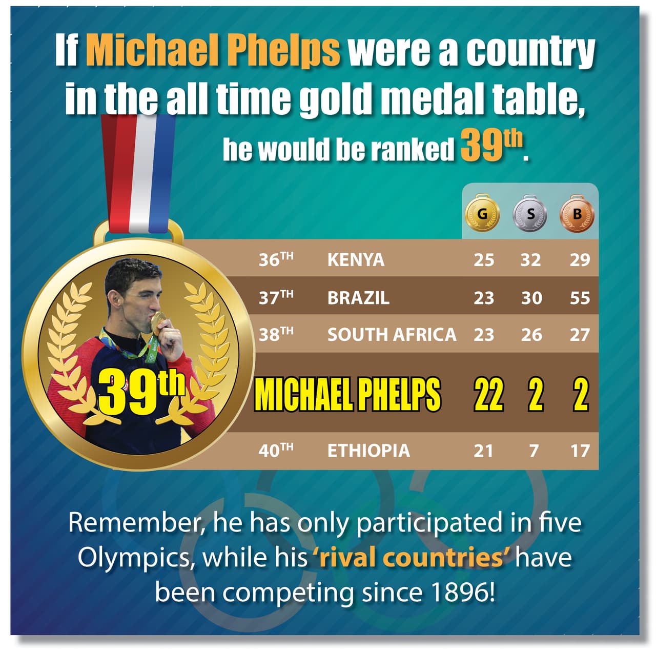 If Micheal Phelps was a country at the Olympics
