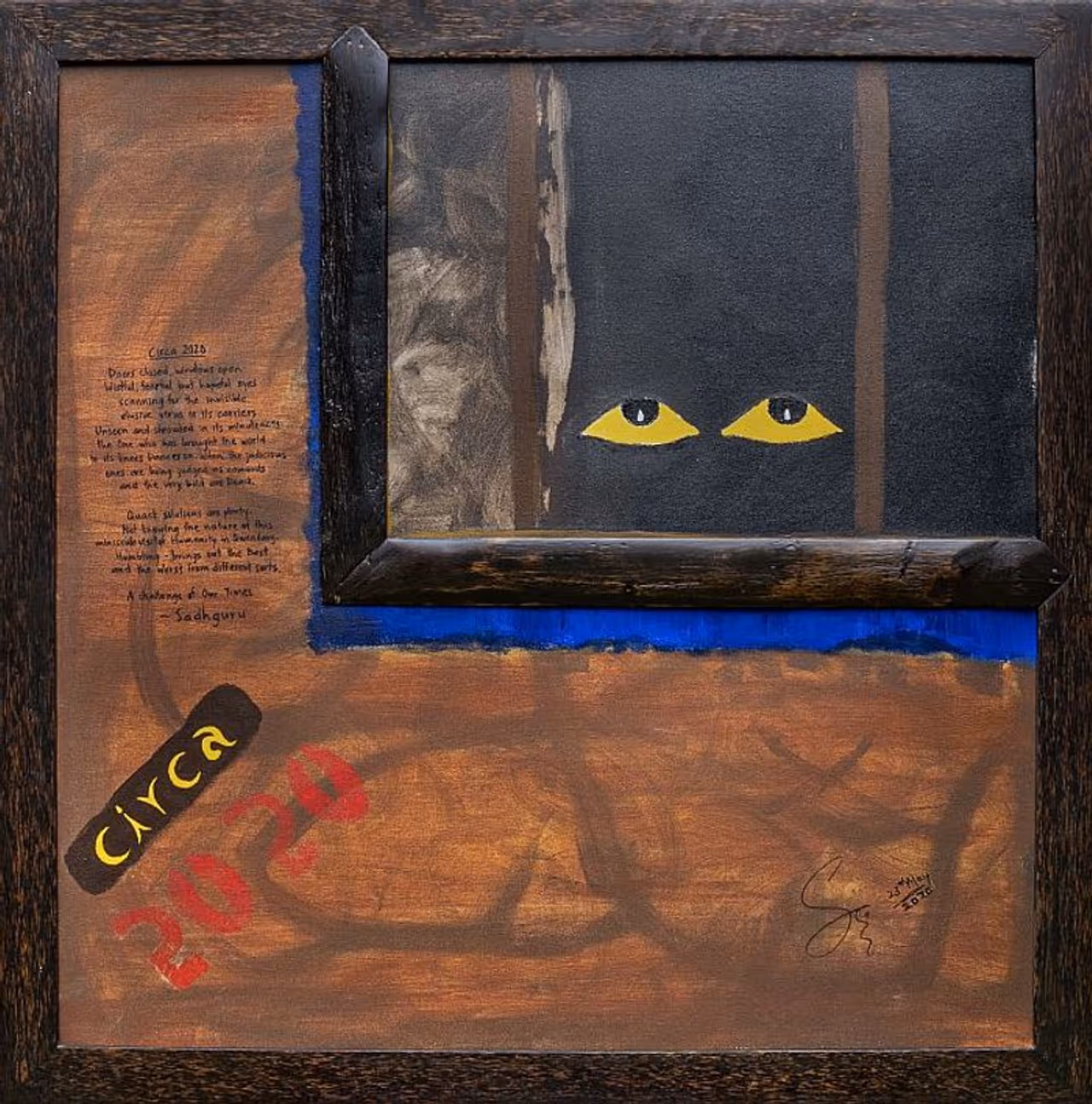 Spiritual leader Sadhguru's artistic endeavour 'Circa 2020', which according to him is an expression of humanity's confrontation with the one who has brought the world to its knees, has fetched Rs 2.3 crore at an online auction.