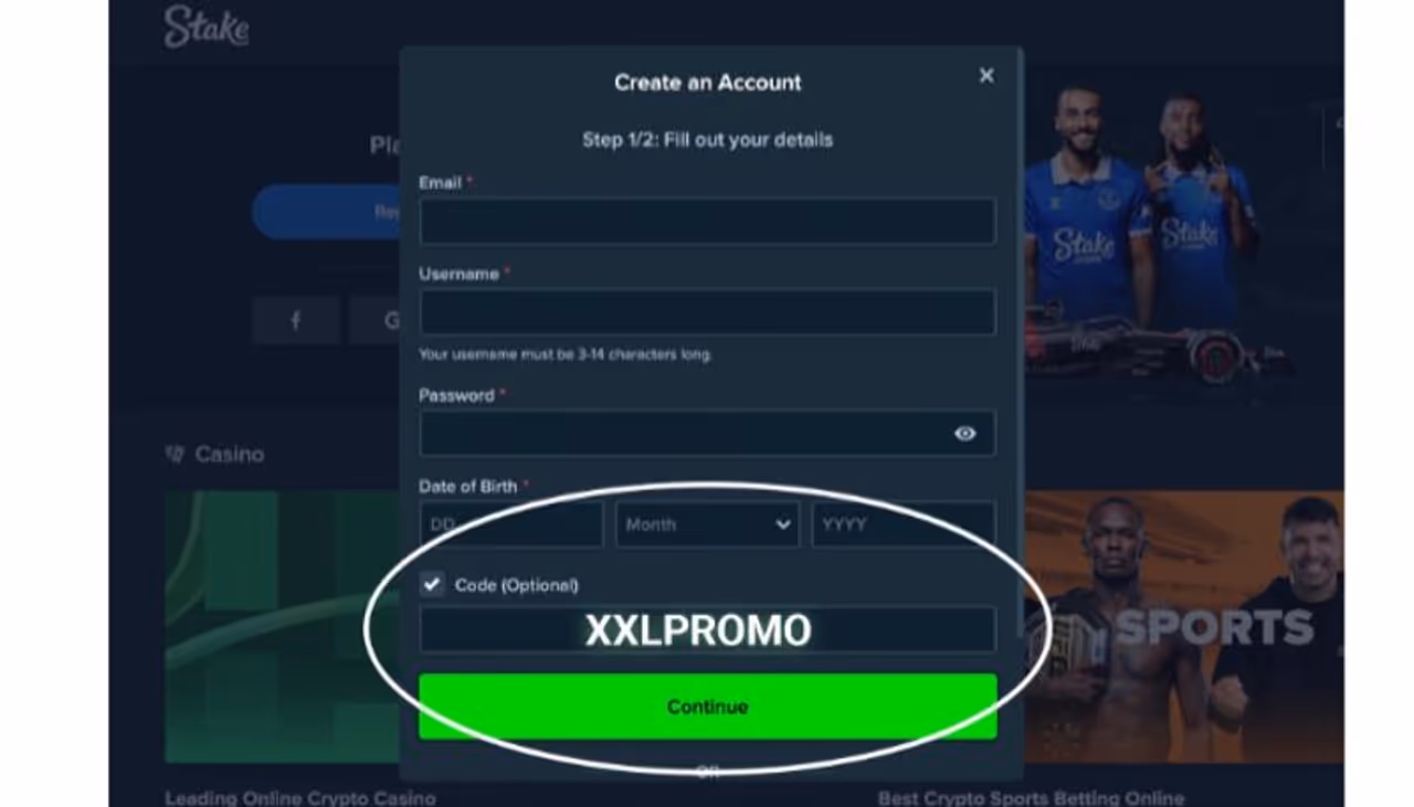Using the Stake bonus code is simple and rewarding. Doing this grants you access to the several bonuses on the site. In a step-by-step guide, let's briefly analyze how to use the promo code "XXLPROMO" to get the site's various offers.