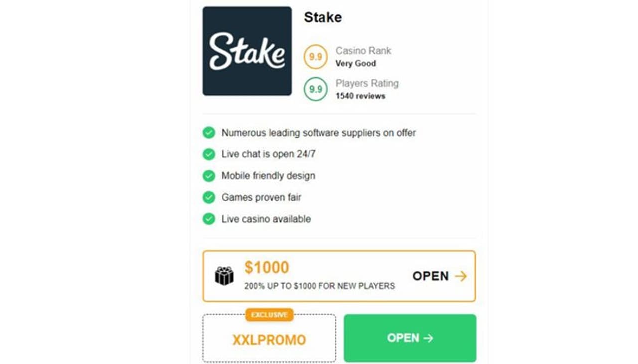 | Stake.com Casino | Up to $3000 bonus | XXLPROMO |