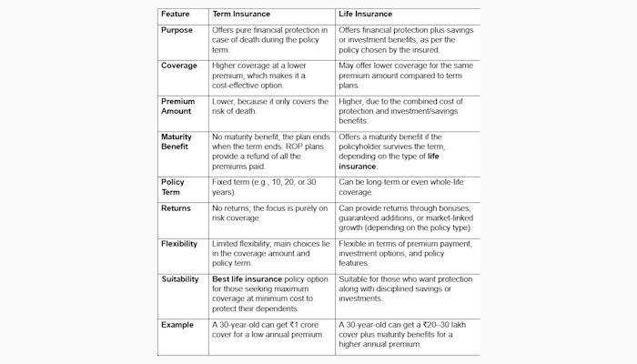 Both term insurance and life insurance have their own merits. Term insurance is the most affordable way to provide your family with a large safety net, while life insurance can help build long-term savings alongside protection. To choose the best life insurance policy for your needs, evaluate your financial goals, dependents’ needs, and budget. The right choice can ensure peace of mind and lasting financial security.