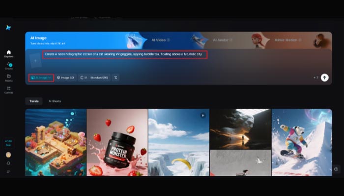Go to Dreamina and begin with words. The more words you use, the more substantial your sticker's impact. Write in rich detail, with texture and intent. For example, if you want a design that feels like the 2020s closeted into one image attempt: