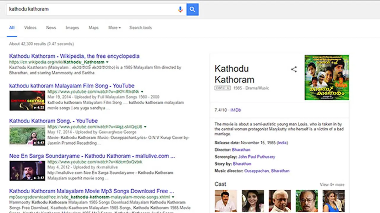 Search for an old Malayalam classic movie 'Kathodu Kathoram' in Google and the movie details appear along with the star cast but in the place of heroine Saritha, appears the picture of Saritha Nair, the main accused in the Solar scam. Once again, when we click on the picture Google gives us the biography of the actress with the photo of Saritha Nair whose allegations against ministers of the previous government had created furore in Kerala politics.