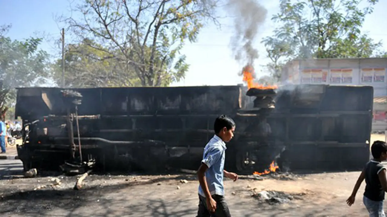 Following the violence that erupted yesterday in which an RTC bus was burnt, police imposed Section 144 in the town to prevent a recurrence of violence. Many leaders of the Joint Action Committee (JAC), which has given the call for the bandh, have been rounded up by the police and the remaining have gone underground to evade arrest.